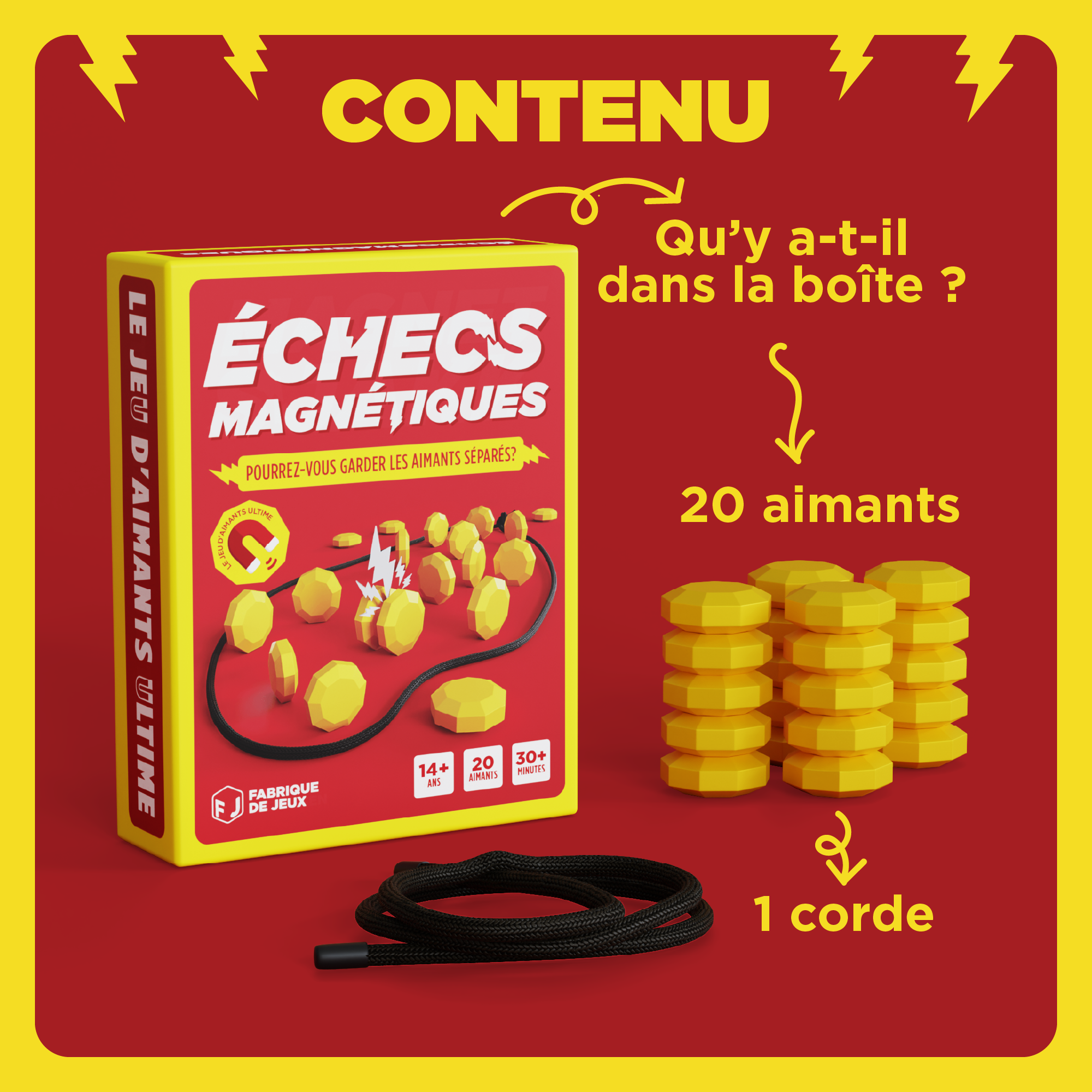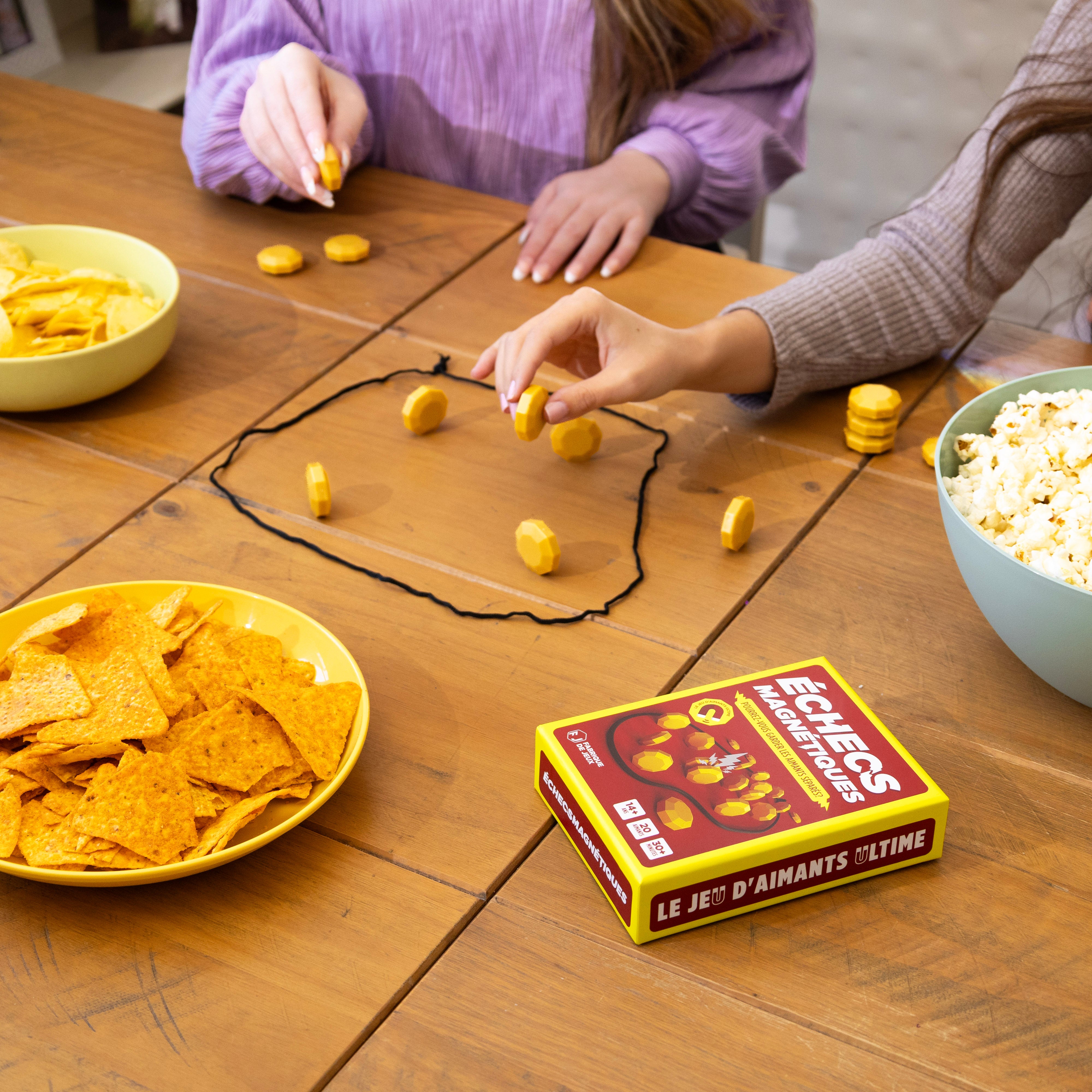 Soyez le premier à vous débarrasser de tous vos aimants pour gagner. Parfait pour des soirées jeux pleines de rires, de compétition et de suspense. Saurez-vous garder votre calme sous la pression et empêcher les aimants de s’assembler ?